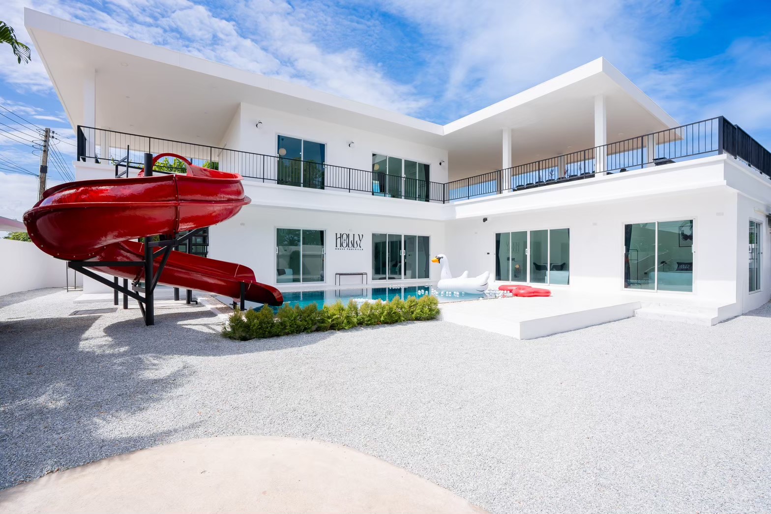 Newly opened pool villa in Pattaya 🧨 🎈Holly House Poolvilla (Baan Holly House) 📎Additional guests can stay up to 22-25 people 📎Additional guests 500฿/night (Extra bed set + pillow + blanket + towel) 📎Children under 7 years old free 3 people 🏠 Damage deposit 5,000฿ (Refunded on check-out In case of no damage) ➖➖➖➖➖➖➖➖➖➖➖ 🔘 House details 🔘 🏠 6 bedrooms, 5 bathrooms 🛌 Bed - Room 1, 1 5-foot bed - Room 2, 1 5-foot bed - Room 3, 2 5-foot beds - Room 4, 1 5-foot bed - Room 5, 1 5-foot bed - Room 6, 2 5-foot beds 🏊🏻 Private swimming pool, size 4x10 meters, depth 1.3-1.4 meters 🛝 10-meter slide 🐋 Fancy floats 🎱 Pool table 🎤 Karaoke 🪩 Teth lights 🥣 Complete kitchen equipment 🍽 Barbecue stove BBQ 🧊 Ice Bucket 🧵 Towels, Hair Dryer 🌐 Free WIFI 🔌 Free electricity (unlimited units) 🚰 Free water (unlimited units) 🚙 Parking in the house for 6-7 cars ➖➖➖➖➖➖➖➖➖➖➖ 📌Noisy outside until 10 pm ⏳Check in from 2 pm onwards ⏳Check out 11 am 🐶🐱 Pet Friendly Pets welcome - Small pets 300฿/night - Large pets 500฿/night ➖➖➖➖➖➖➖➖➖➖➖➖ Nearby tourist spots🏖️ 🗳️Jomtien Beach 5 km 🗳️Ban Amphoe Beach 8 km 🗳️TEA FACTORY AND MORE 🗳️Bacco Beach Italian Restaurant 🗳️The Glass House Beachfront Restaurant and Bar 🗳️Poo Pen Seafood Restaurant 🗳️Juk-Joe Restaurant 🗳️View Marina Restaurant 🗳️Salt Pattaya Restaurant 🗳️Bridge specialty coffee 🗳️Nong Nooch Garden 🗳️Tiger Zoo Pattaya 🗳️Columbia Pictures Aquaverse Water Park 🗳️Legend Siam Pattaya